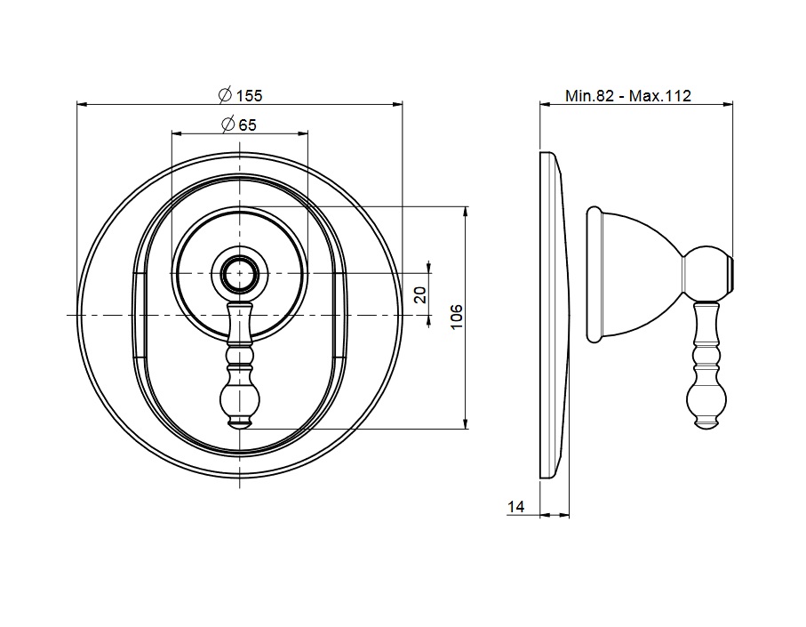 wysięg: 82 - 112 mm
