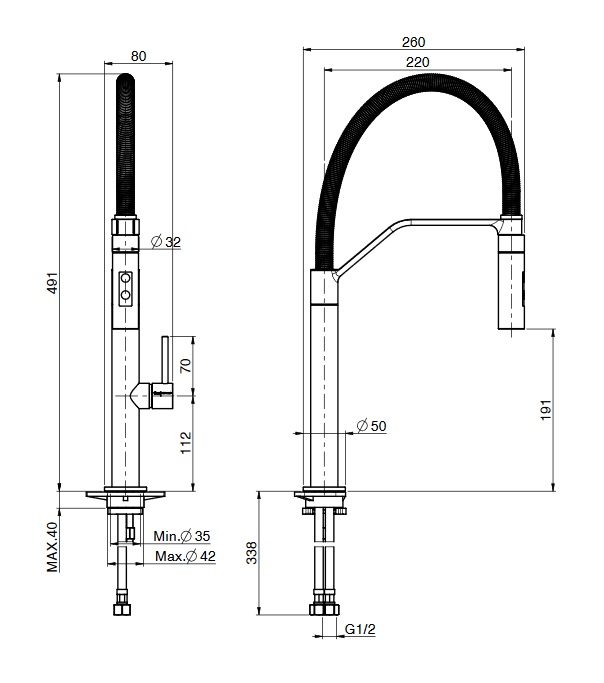 Carlo Frattini Bateria kuchenna z wyciąganą wylewką Chrom F7047/1CR