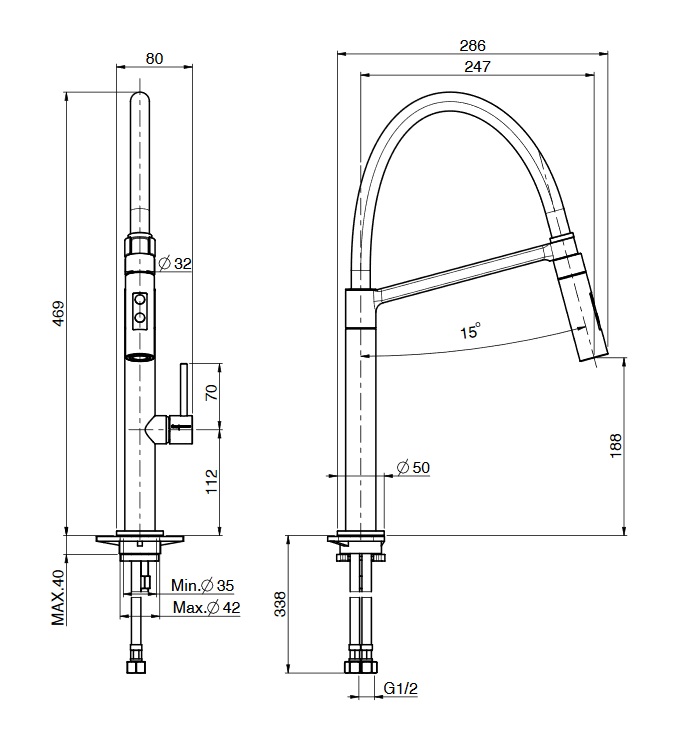 wysięg wylewki: 247 mm