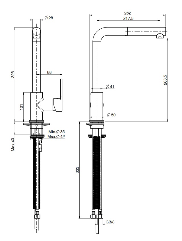 wysokość wylewki: 288,5 mm