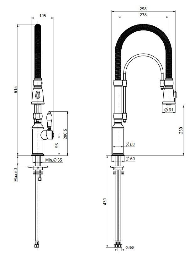 Wymiary: wysokość: 472 mm wysięg wylewki: 233 mm wysokość wylewki: 200 mm szerokość: 79 mm