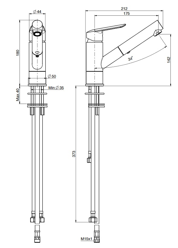 2 elastyczne węże przyłączeniowe 370 mmobrotowa wylewkaelastyczny wąż 1200 mmwyciągany prysznic ręcznyKolor: ChromWymiary:wysokość: 180 mmwysięg wylewki: 175 mmwysokość wylewki: 142 mmCena dotyczy baterii kuchennej.