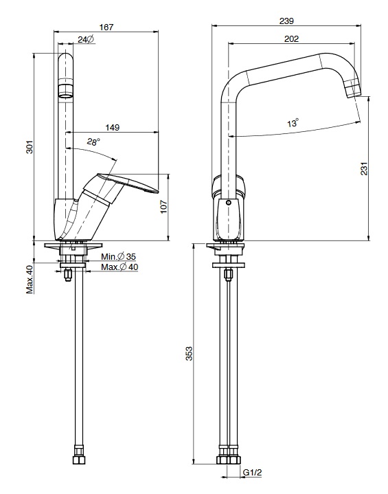 2 elastyczne węże przyłączeniowe 370 mmobrotowa wylewkaKolor: ChromWymiary:wysokość: 301 mmwysięg wylewki: 202 mmwysokość wylewki: 231 mmCena dotyczy baterii kuchennej.