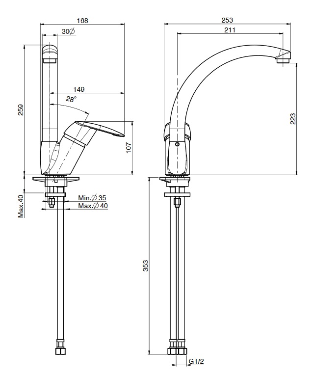 2 elastyczne węże przyłączeniowe 370 mmobrotowa wylewkaKolor: ChromWymiary:wysokość: 259 mmwysięg wylewki: 211 mmwysokość wylewki: 223 mmCena dotyczy baterii kuchennej.