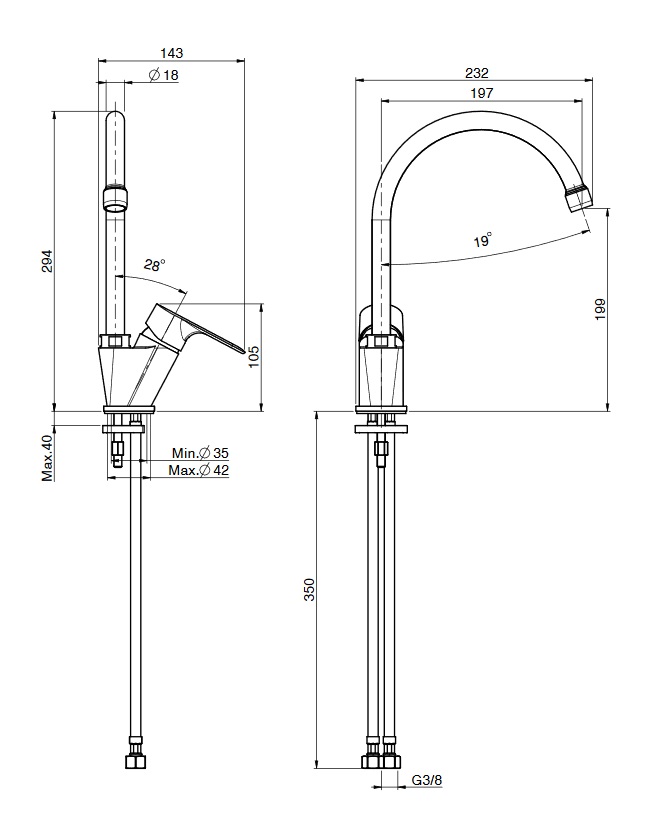 2 elastyczne węże przyłączeniowe 370 mmobrotowa wylewkaKolor: ChromWymiary:wysokość: 294 mmwysięg wylewki: 197 mmwysokość wylewki: 199 mmCena dotyczy baterii kuchennej.