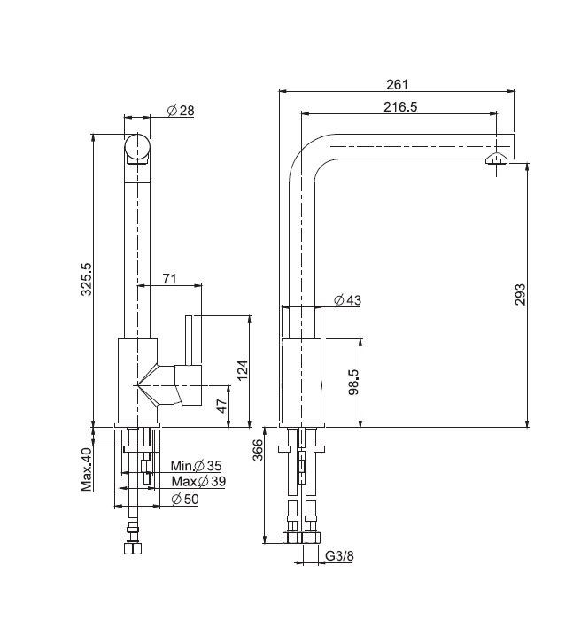 2 elastyczne węże przyłączeniowe 370 mmobrotowa wylewkaKolor: Inox (stal nierdzewna)Wymiary:wysokość: 325,5 mmwysięg wylewki: 216,5 mmwysokość wylewki: 293 mmCena dotyczy baterii kuchennej.