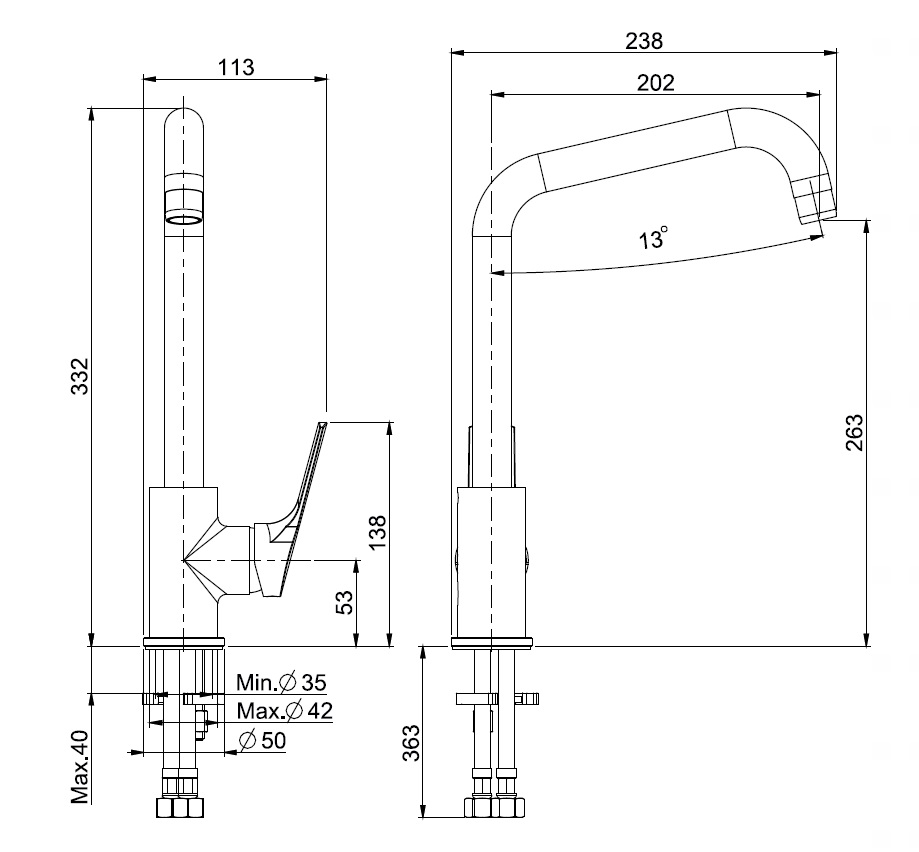 2 elastyczne węże przyłączeniowe 370 mmobrotowa wylewkaKolor: ChromWymiary:wysokość: 332 mmwysięg wylewki: 202 mmwysokość wylewki: 263 mmszerokość: 113 mmCena dotyczy baterii kuchennej.