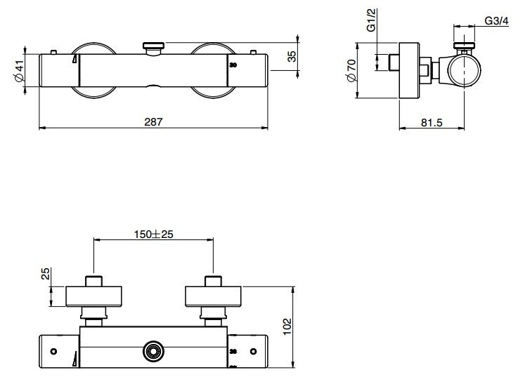 2 złącza mimośrodoweniegrzejąca sie obudowametalowe uchwytywylot górnyKolor: ChromProdukt za dopłatą dostępny w innych wersjach kolorystycznych.Paleta dostępna w galerii, informacje dostępne u obsługi sklepu.Wymiary:wysięg przyłącza: 81,5 mmszerokość: 287 mmdługość: 102 mmCena dotyczy baterii termostatycznej.