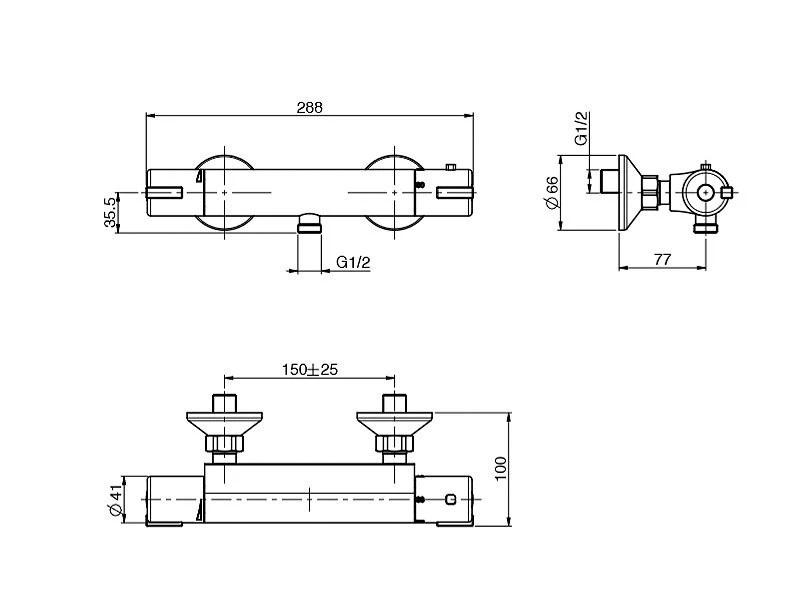 2 złącza mimośrodoweniegrzejąca sie obudowawylot dolnyKolor: ChromProdukt za dopłatą dostępny w innych wersjach kolorystycznych.Paleta dostępna w galerii, informacje dostępne u obsługi sklepu.Wymiary:wysięg przyłącza: 77 mmszerokość: 288 mmdługość: 100 mmCena dotyczy baterii termostatycznej.