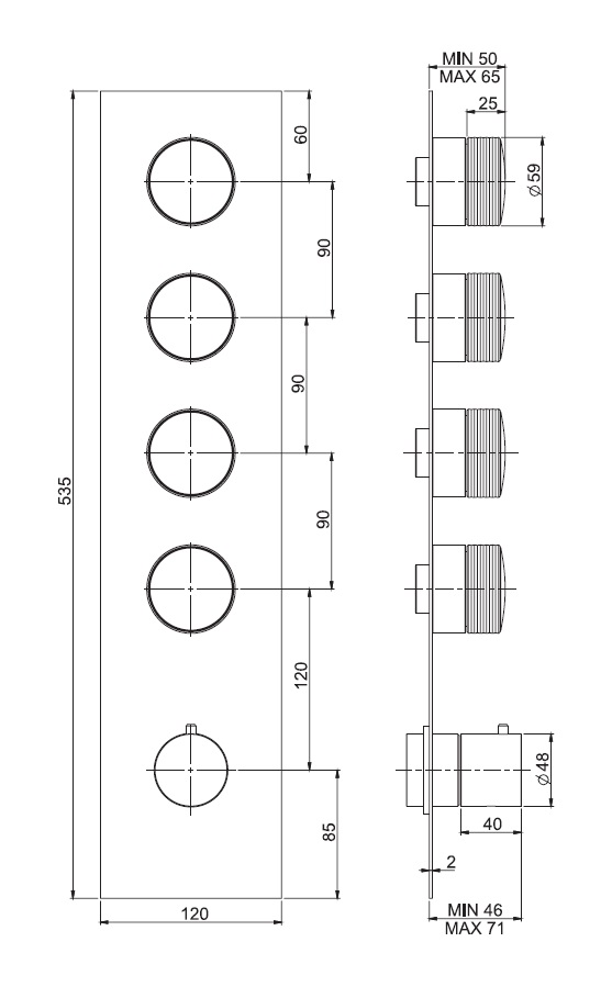 Wymiary: szerokość rozety: 120 mm wysokość rozety: 535 mm długość uchwytów: 50 - 71 mm