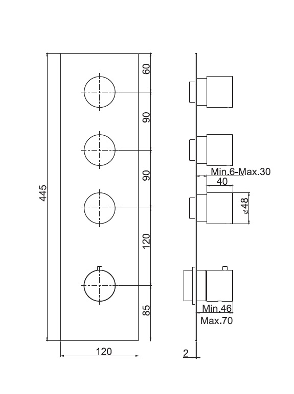 Kolor: ChromProdukt za dopłatą dostępny w innych wersjach kolorystycznych.Paleta dostępna w galerii, informacje dostępne u obsługi sklepu.Wymiary:szerokość rozety: 120 mmwysokość rozety: 445 mmdługość uchwytów: 46 - 70 mmPasujące produkty:- element podtynkowy: F2463Cena dotyczy baterii termostatycznej podtynkowej.