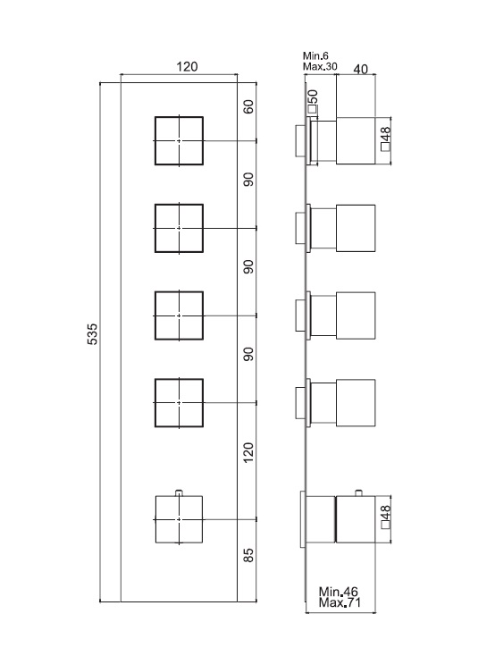 Wymiary: szerokość rozety: 120 mm wysokość rozety: 535 mm długość uchwytów: 50 - 71 mm