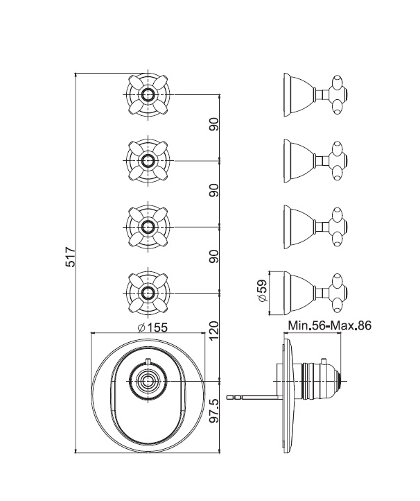Kolor: ChromProdukt za dopłatą dostępny w innych wersjach kolorystycznych.Paleta dostępna w galerii, informacje dostępne u obsługi sklepu.Wymiary:średnica mniejszych rozet: 59 mmśrednica wiekszej rozety: 155 mmdługość uchwytów: 56 - 86 mmPasujące produkty:- element podtynkowy: F2464Cena dotyczy baterii termostatycznej podtynkowej.