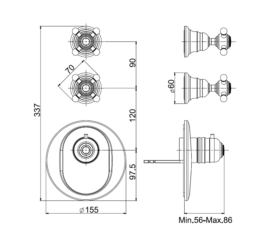 Kolor: ChromProdukt za dopłatą dostępny w innych wersjach kolorystycznych.Paleta dostępna w galerii, informacje dostępne u obsługi sklepu.Wymiary:średnica mniejszych rozet: 70 mmśrednica wiekszej rozety: 155 mmdługość uchwytów: 56 - 86 mmPasujące produkty:- element podtynkowy: F2462Cena dotyczy baterii termostatycznej podtynkowej.