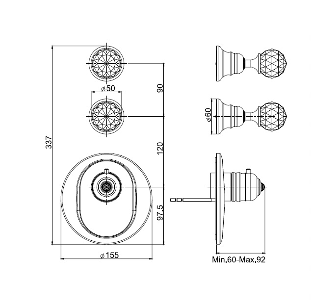 Kolor: ChromProdukt za dopłatą dostępny w innych wersjach kolorystycznych.Paleta dostępna w galerii, informacje dostępne u obsługi sklepu.Wymiary:średnica mniejszych rozet: 50 mmśrednica wiekszej rozety: 155 mmdługość uchwytów: 60 - 92 mmPasujące produkty:- element podtynkowy: F2462Cena dotyczy baterii termostatycznej podtynkowej.