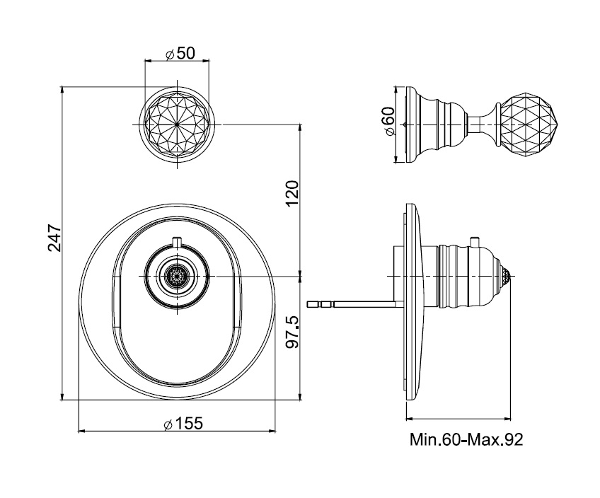 Kolor: ChromProdukt za dopłatą dostępny w innych wersjach kolorystycznych.Paleta dostępna w galerii, informacje dostępne u obsługi sklepu.Wymiary:średnica mniejszych rozet: 50 mmśrednica wiekszej rozety: 155 mmdługość uchwytów: 60 - 92 mmPasujące produkty:- element podtynkowy: F2461Cena dotyczy baterii termostatycznej podtynkowej.