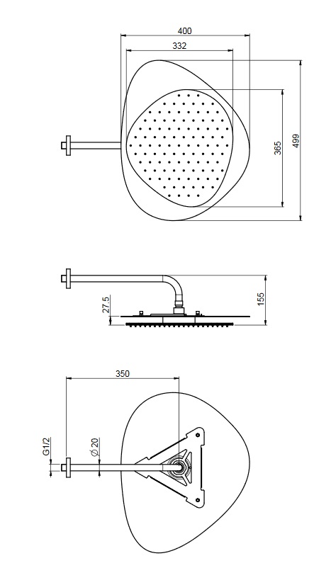 dysze zapobiegające osadzaniu się kamieniaramie naścienne 350 - 1/2 ”różne wykończenia odnoszą się do płyty górnej: chrom, biały, czarny