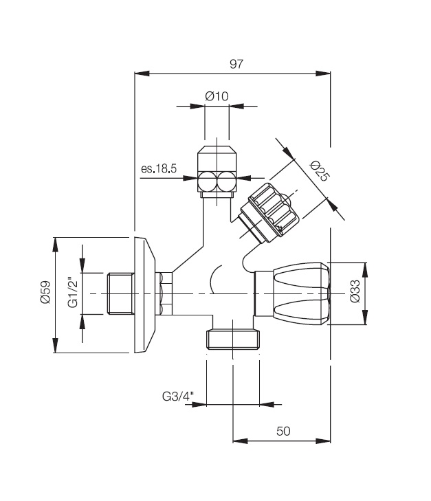 Carlo Frattini Zawór przyłączeniowy do baterii, do pralki Chrom F209/1CR