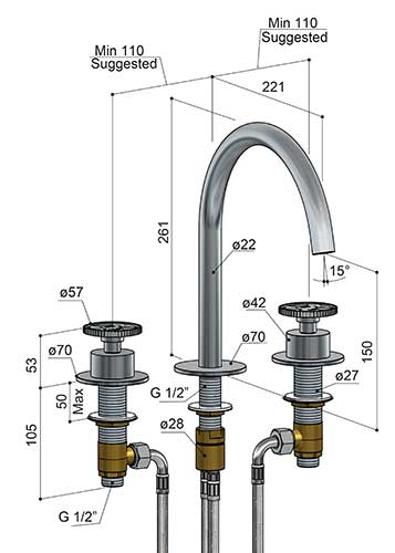Hotbath Cobber@work Bateria umywalkowa 3-otworowa Chrome CW033.CR