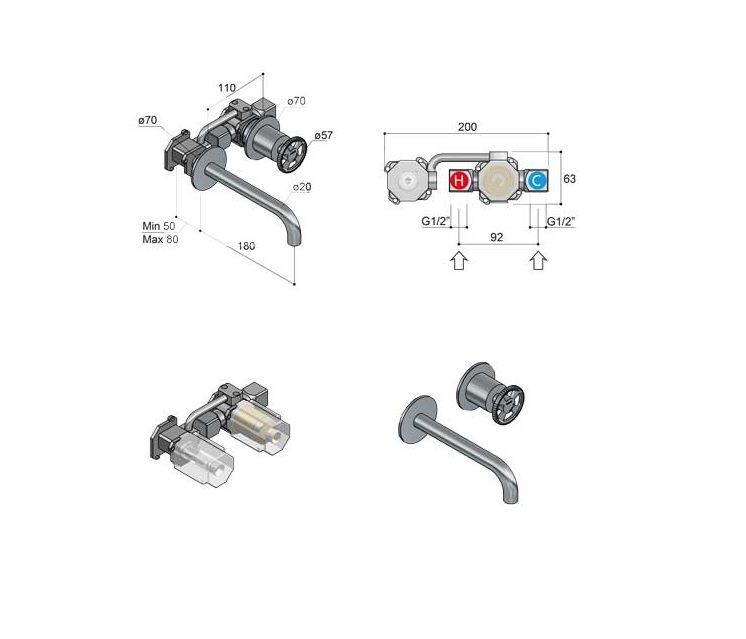 Hotbath Cobber@work Bateria umywalkowa z wylewką 18 cm podtynkowa element zewnętrzny Brushed brass PVD CW005-18.BBP