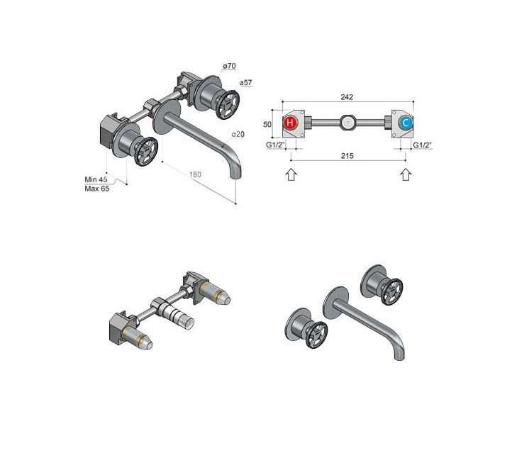 Hotbath Cobber@work Bateria umywalkowa podtynkowa 3-otworowa z wylewką 18 cm Brushed brass PVD CW005T-18.BBP