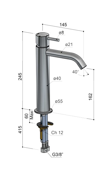 Wysokość wylewki: 162 mm