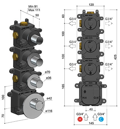 Hotbath Archie Element podtynkowy do baterii termostatycznej podtynkowej z 3 wylotami MHF003