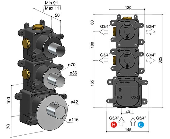 Hotbath Archie Element podtynkowy do baterii termostatycznej podtynkowej z 2 wylotami MHF002