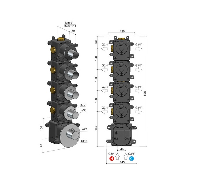 Hotbath Archie Element podtynkowy do baterii termostatycznej podtynkowej z 4 wylotami MHF004