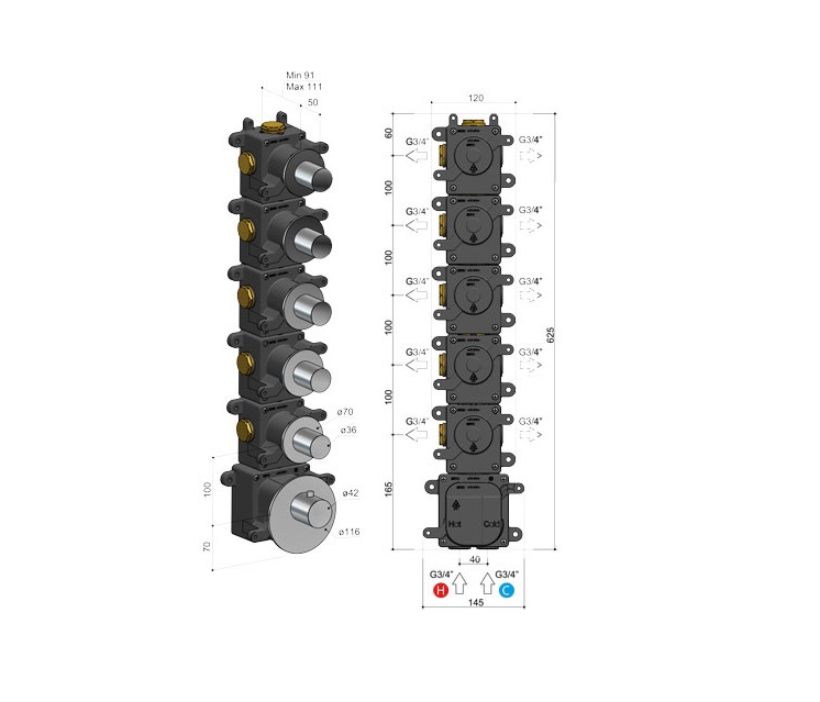 Hotbath Archie Element podtynkowy do baterii termostatycznej podtynkowej z 5 wylotami MHF005