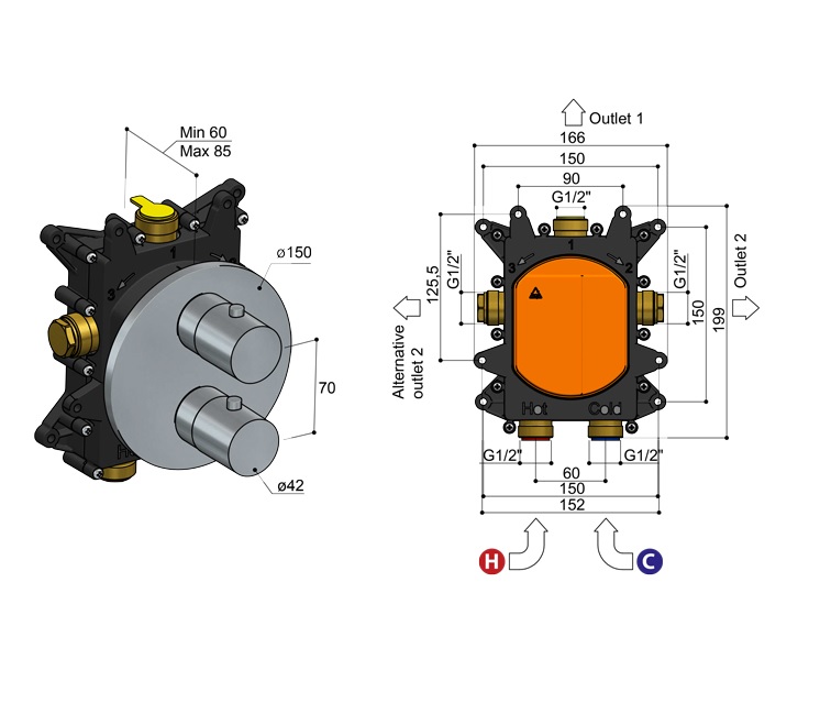 Głębokość montażu: 60 - 85 mm