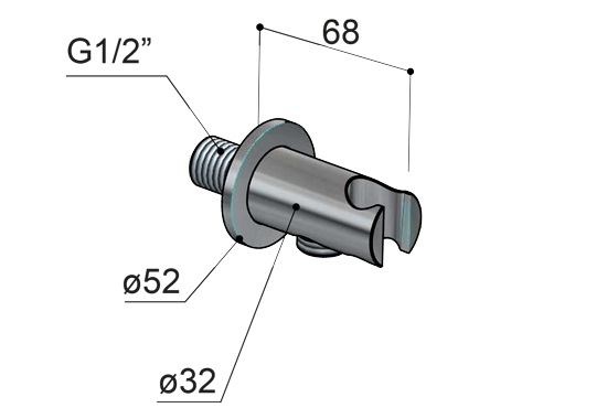 Hotbath Archie Przyłącze kątowe z uchwytem na słuchawkę prysznicową Brushed steel AR515.IX
