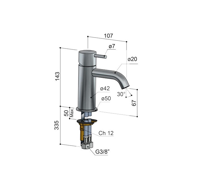 Wymiary: Wysokość: 143 mm Wysięg wylewki: 107 mm Wysokość wylewki: 67 mm