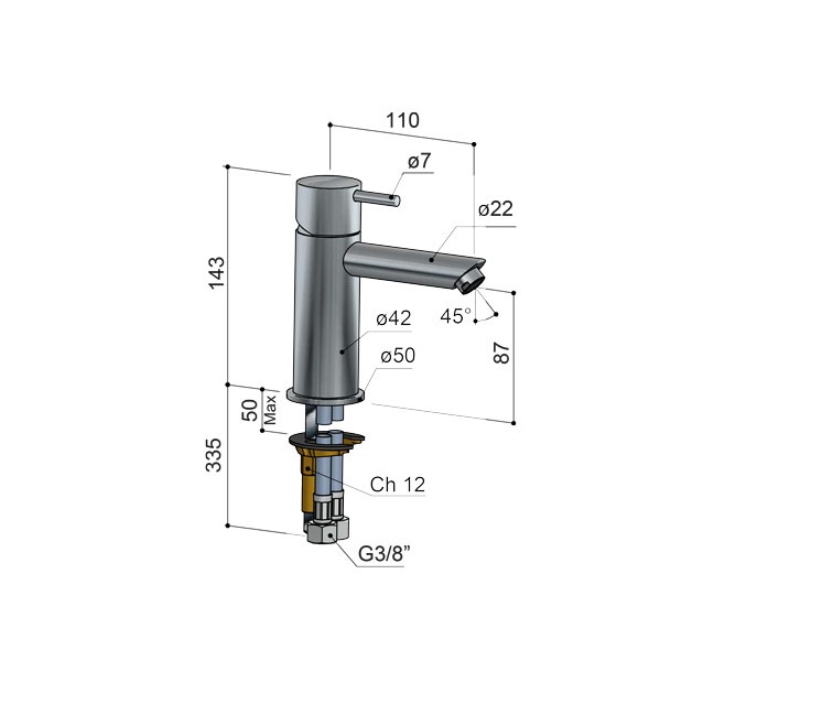 Wymiary: Wysokość: 143 mm Wysięg wylewki: 110 mm Wysokość wylewki: 87 mm