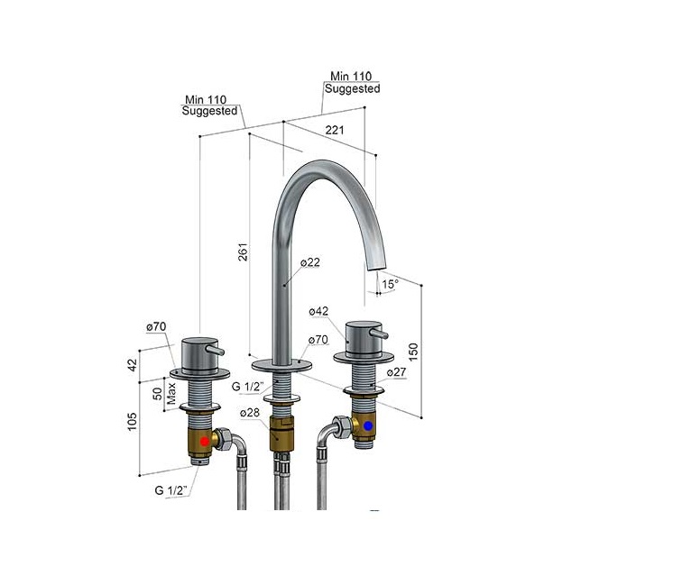 Wymiary: Wysokość: 261 mm Wysięg wylewki: 221 mm Wysokość wylewki: 150 mm Wysokość uchwytu: 42 mm