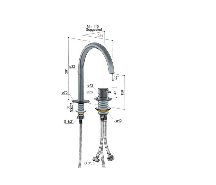 Wymiary: Wysokość: 261 mm Wysięg wylewki: 221 mm Wysokość wylewki: 150 mm Wysokość uchwytu: 45 mm