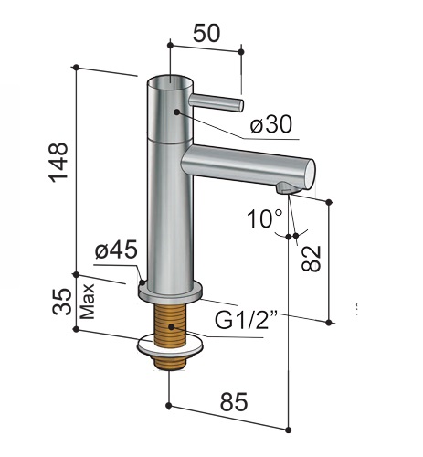 Wymiary: Wysokość: 148 mm Wysięg wylewki: 85 mm Wysokość wylewki: 82 mm