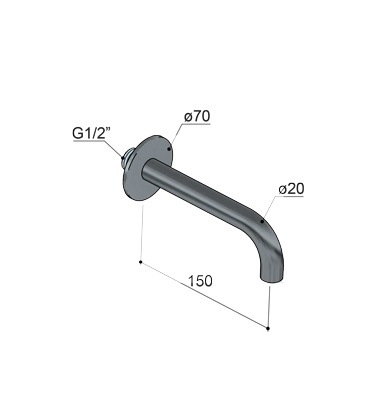 Wymiary: Wysięg wylewki: 150 mm Średnica rozety: 70 mm