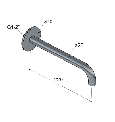 Wymiary: Wysięg wylewki: 220 mm Średnica rozety: 70 mm