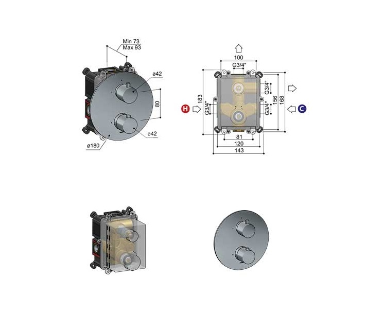 - Bateria natryskowa termostatyczna (element zewnętrzny): CB009.xx