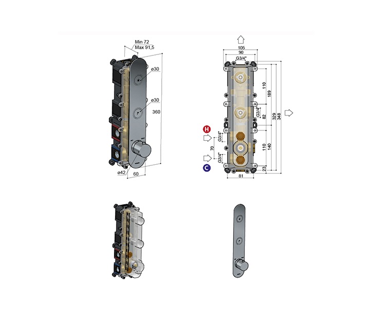 Hotbath Cobber Bateria termostatyczna dwudrożna podtynkowa z przyciskiem element zewnętrzny Brushed nickel PB066.GN