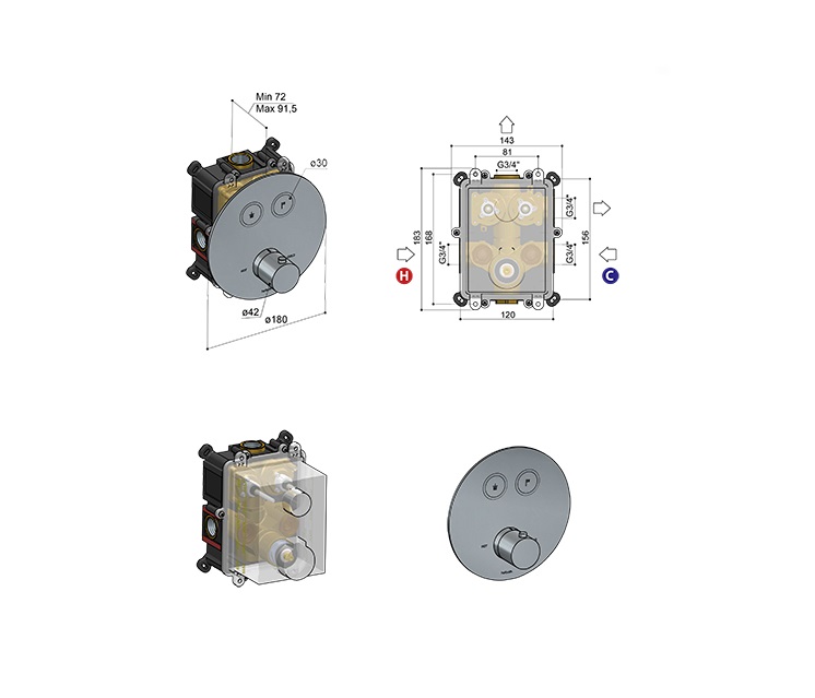 Hotbath Cobber Bateria termostatyczna dwudrożna podtynkowa z przyciskiem element zewnętrzny Brushed nickel PB009.GN