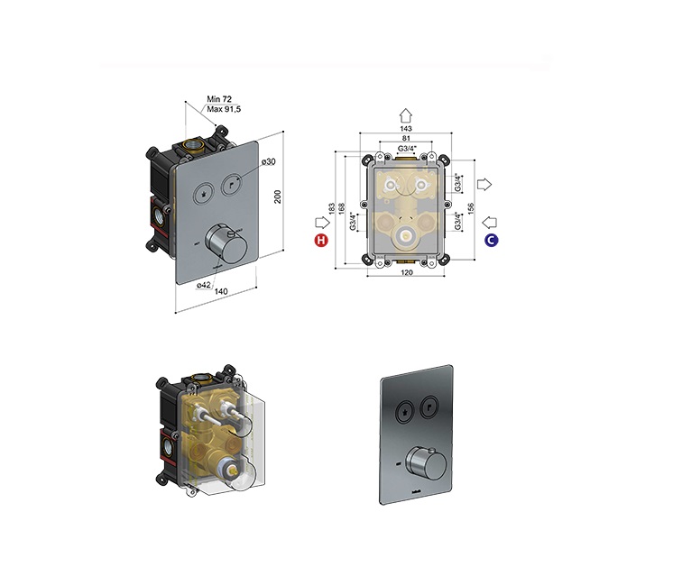 Hotbath Cobber Bateria termostatyczna 2-drożna podtynkowa z przyciskiem element zewnętrzny Brushed nickel PB009Q.GN