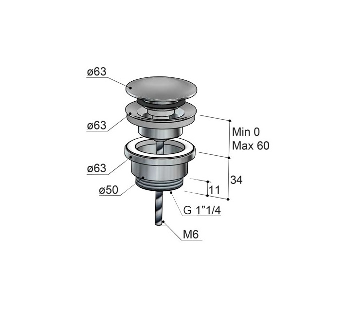 Wymiary: Średnica pokrywy: 63 mm Wysokość: 34 - 94 mm