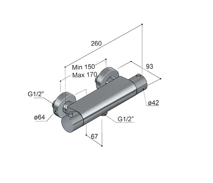 Wymiary: Szerokość: 260 mm Wysięg całości: 93 mm Wysięg przyłącza: 67 mm