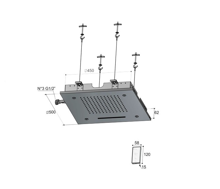 Hotbath Mate Deszczownica podtynkowa z wylewką kaskadową z dyszami mgiełkowymi 50x50 cm z oświetleniem LED Chrome M146.CR