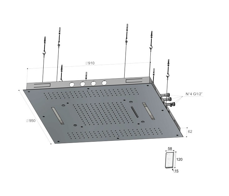 Hotbath Mate Deszczownica podtynkowa z wylewką kaskadową z dyszami mgiełkowymi 95x95 cm z oświetleniem LED Chrome M173.CR