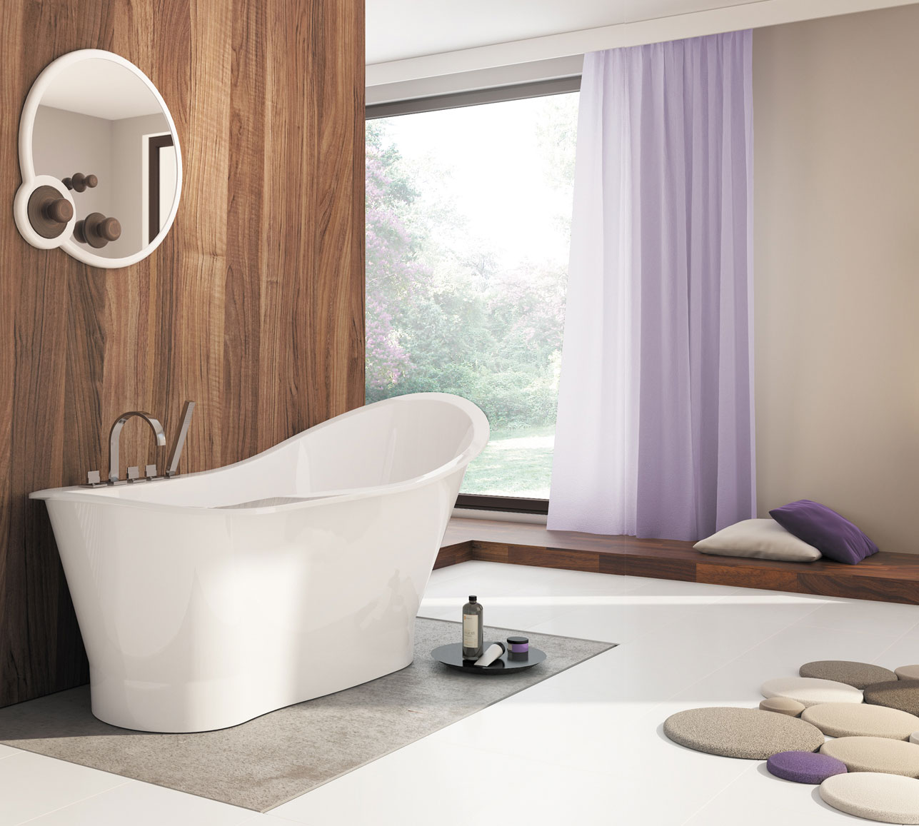 Wanna wolnostojąca wykonana z lanego marmuru z możliwością zamontowania baterii na wannie.