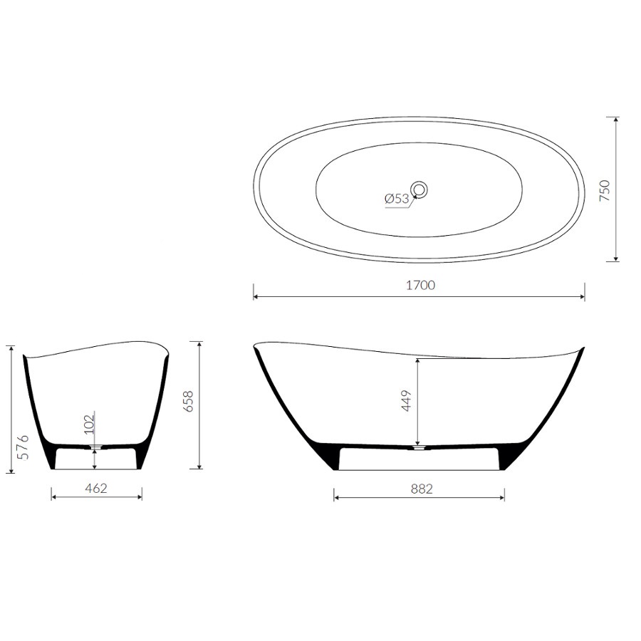 Sanitti Venti Wanna wolnostojąca 170x75 cm Biały połysk P_W_171_02_1700-BP