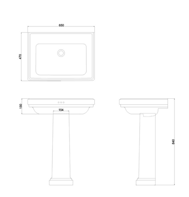 Burlington Riviera Umywalka ścienna 1-otworowa 65x47 cm Biała RIV21TH